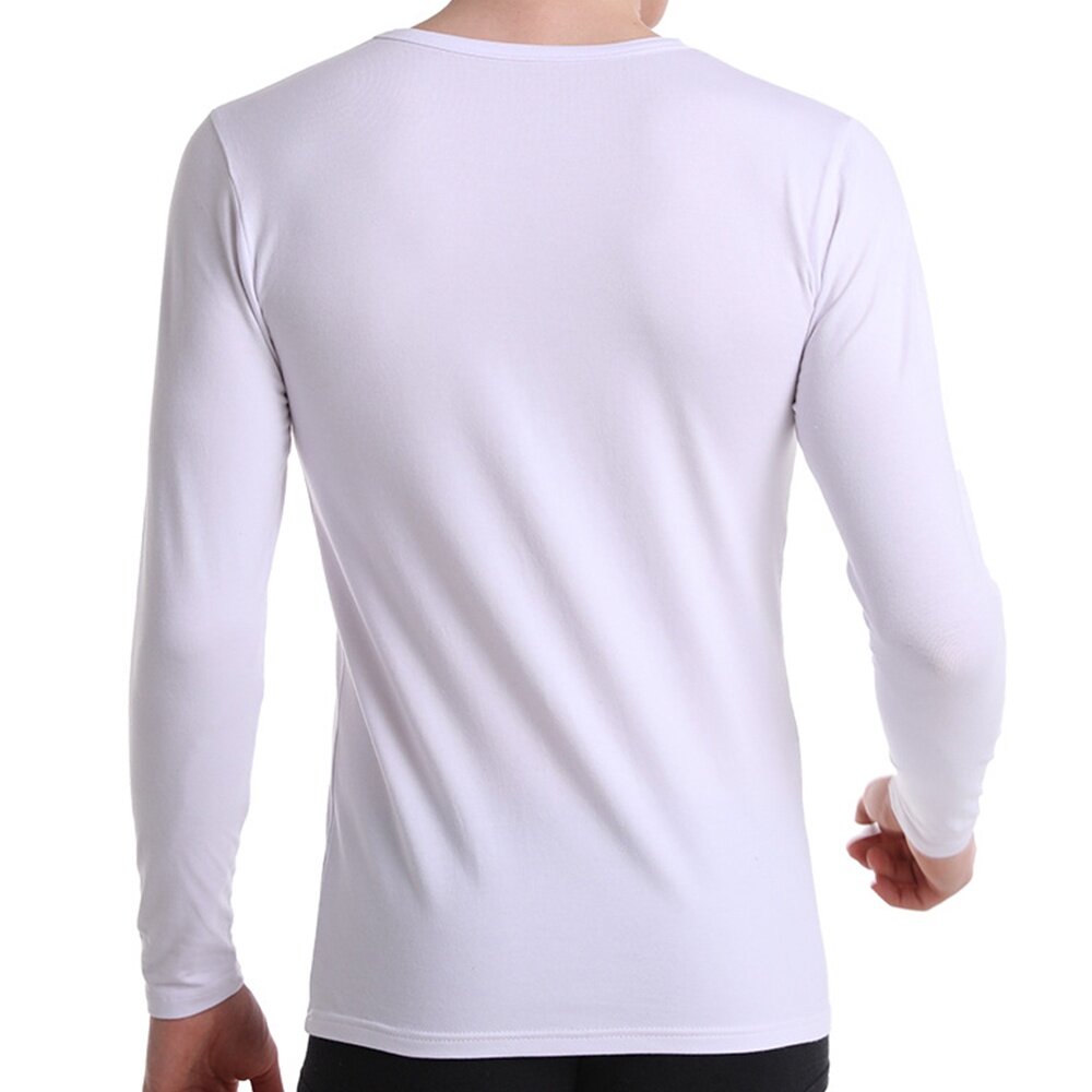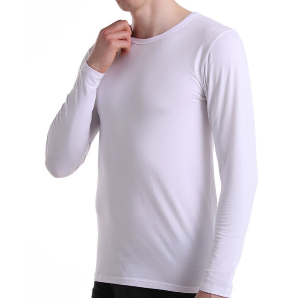 彈性長袖內衣,純白內衣-U型領-長袖